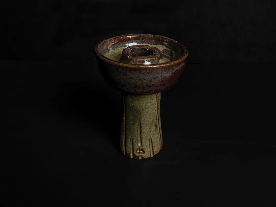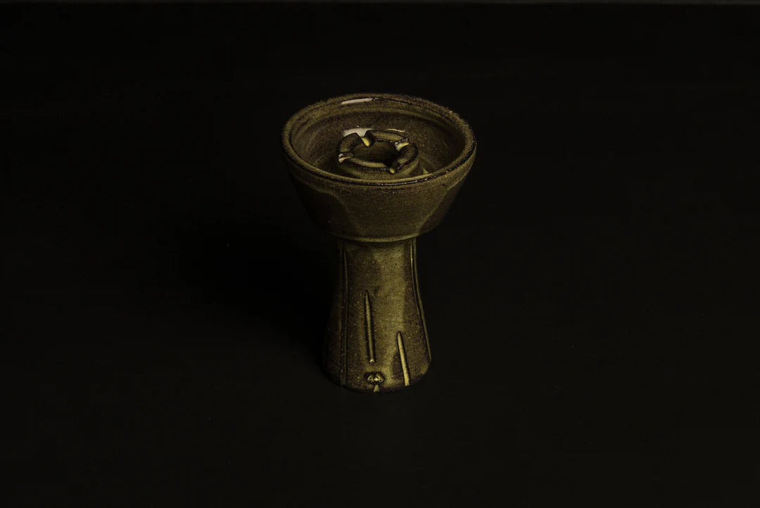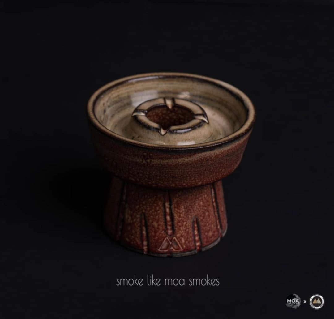 GRAVYL® is designed with a deep and wide trench to allow enough space for deep dense packed tobaccos and enough room to fluff those blonde leaf brands to perfection! While still saving shisha at only 16-18 grams! MOAb Gravyl® due to the unique spire shape will hold little less then standard Gravyl®. It features engraved deep patterns around the base for easy gripping in between sessions as well as acting like a heat sink so it doesn't get as hot to the touch. What is most exciting is that we developed a new Shishaware claybody for GRAVYL® as it is made from high mineral brown stoneware which yields high heat retention. The only USA made brown stoneware production bowl on the market besides of course our HELYX V2! This allows this bowl to retain heat like no other! High heat retention means long lasting flavorful sessions, no uncooked flavor is left behind!